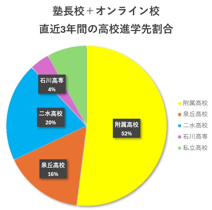 結果に関わらず、本当にお疲れ様でした。そしてお子さんを支え続けてくださったお母さん、本当にありがとうございました。面接練習をたくさんした附属小学校受験。2.5倍の高倍率を勝ち抜いた錦丘中学受験。トリッキーな問題に悩まされた附属高校受験。フィボナッチ数列まで出た石川高専受験。社会の記述がとても難しかった石川県公立高校受験。本当によく頑張りました。この教室で頑張ってくれてありがとう。卒塾してもずっと応援しています。