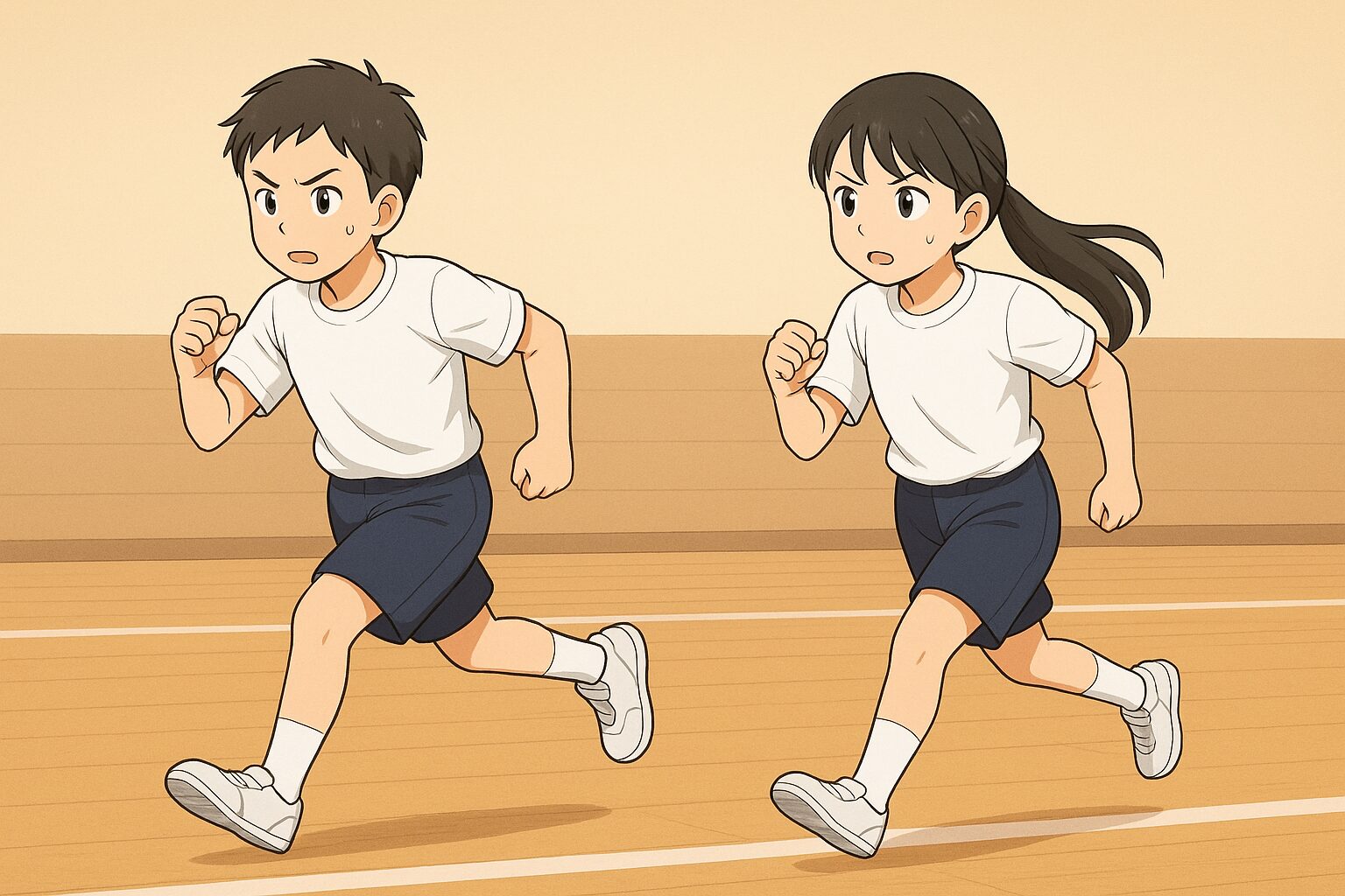 シャトルラン形式で往復走を練習すると持久力が向上します。
